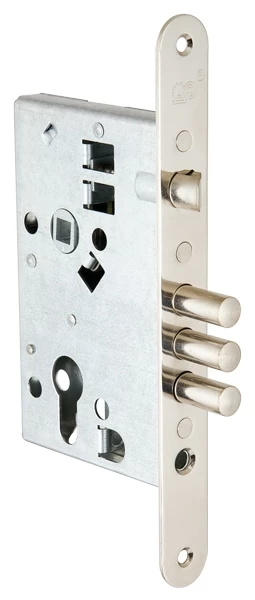 Замок врезной цилиндровый ЗВ4-31/55 с защелкой предназначен для входных и внутренних дверей толщиной 40-50 мм жилых домов, квартир, торговых и конторских помещений. Замок универсальный, его можно устанавливать как в правые, так и в левые двери, переустановив защелку. Возможно использование замка с цилиндровым механизмом длиной 70 мм для установки в металлические двери. Межосевое расстояние 55 мм. Дверь может быть закрыта на защелку и открыта с помощью фалевой ручки при открытом засове замка. Изготавливается с засовом из трех стальных стержней круглого сечения. Покрытие корпуса — цинковое. Покрытие лицевой и ответной планок — никелевое. Стальная защелка. Вылет ригелей — 22 мм, диаметр ригеля — 10,7 мм. Бэксет - 52,8 мм.