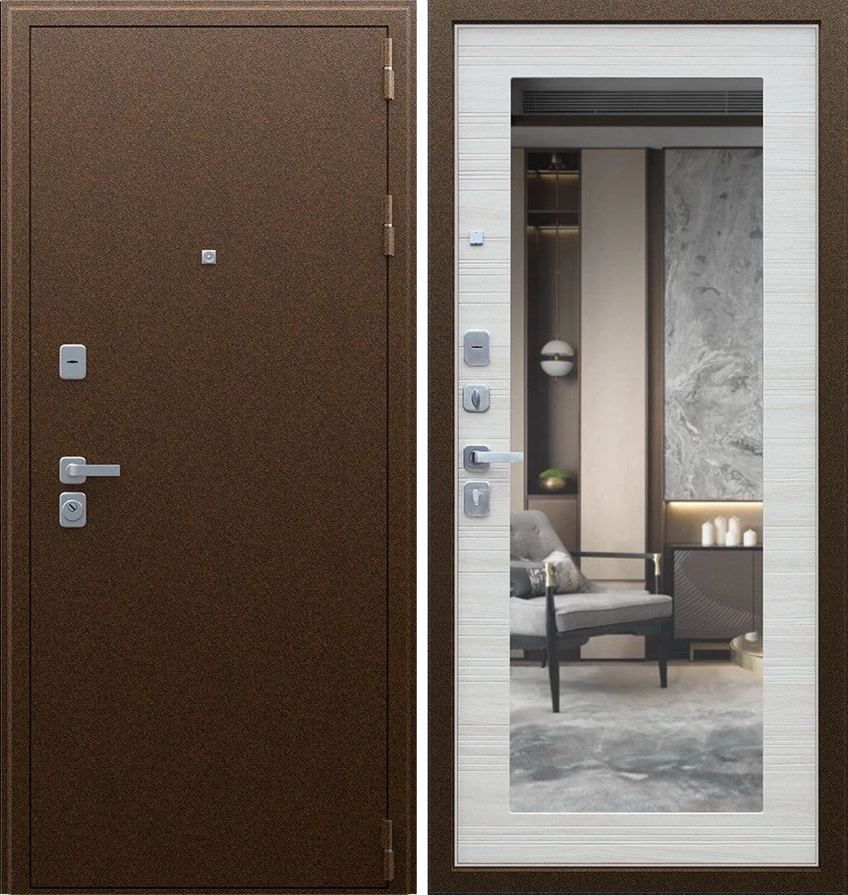 Надежная входная Дверь Спартак с зеркалом Акация Светлая Поперечная премиум класса по цене 37 027 руб. Большая толщина стали защитит от проникновения в ваш дом, квартиру или коттедж. Используется очень качественная фурнитура: замки, цилиндры, ручки, защелки. Покрытие и отделка двери изготовлено под внимательным контролем производителя. Дверь имеет долгий срок службы и гарантию.