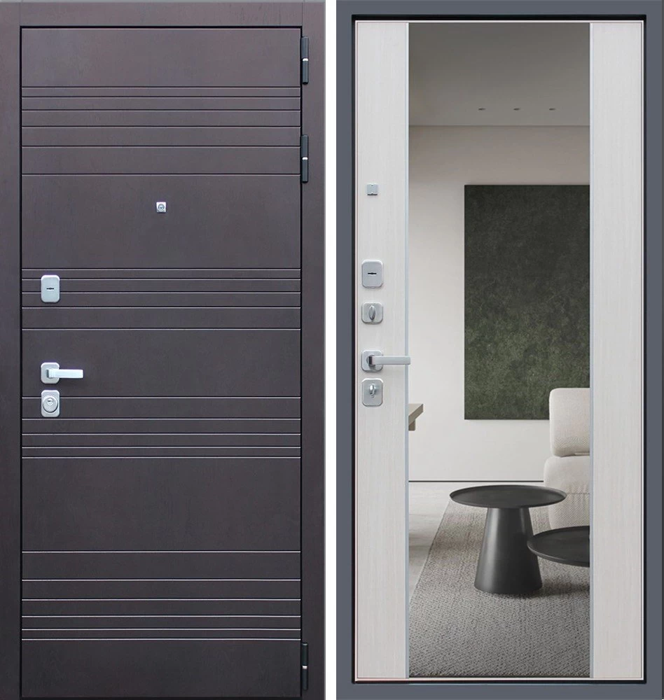 Надежная входная Дверь Дуэт с зеркалом премиум класса по цене 47 777 руб. Большая толщина стали защитит от проникновения в ваш дом, квартиру или коттедж. Используется очень качественная фурнитура: замки, цилиндры, ручки, защелки. Покрытие и отделка двери изготовлено под внимательным контролем производителя. Дверь имеет долгий срок службы и гарантию.