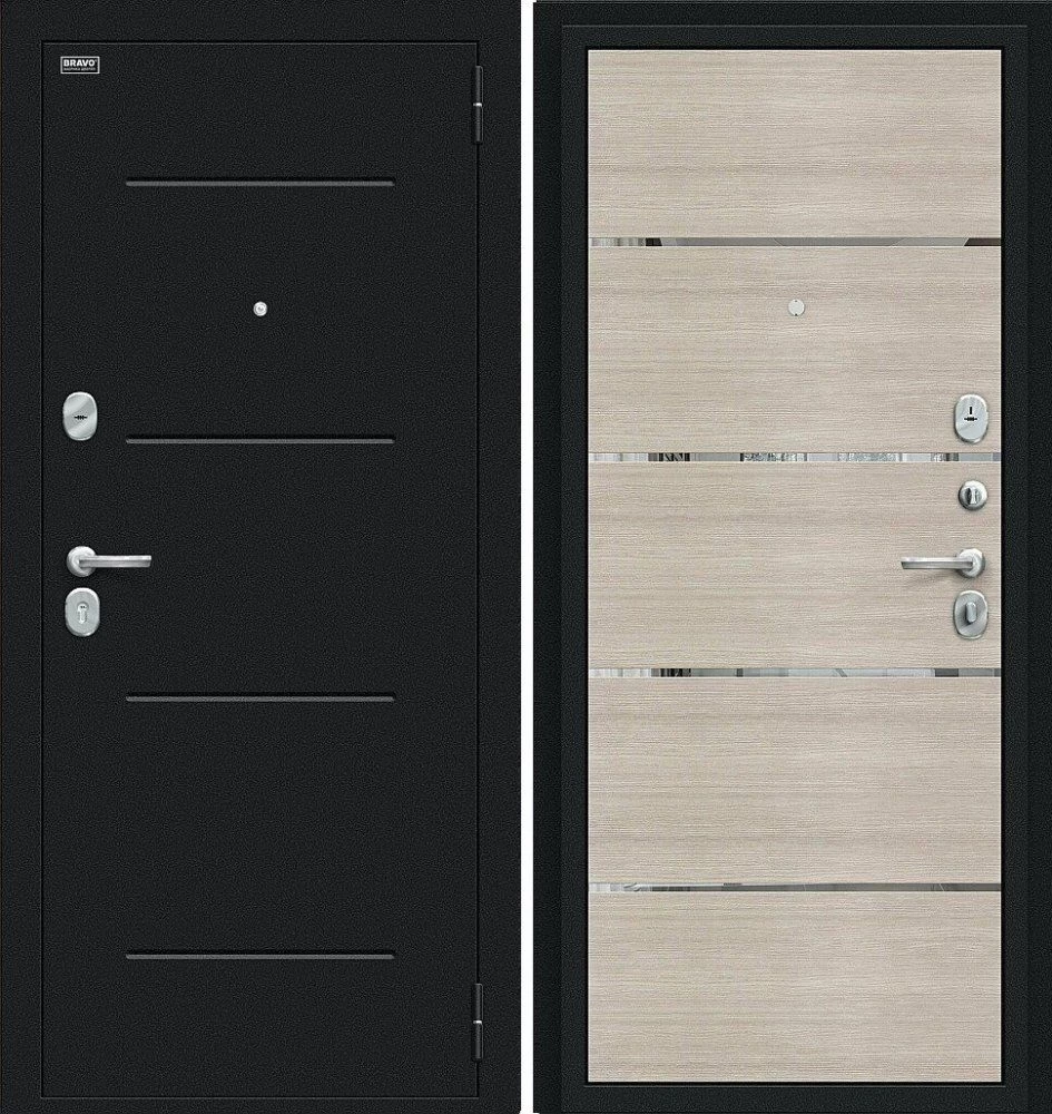 Надежная входная Дверь Браво Лайн Букле черное/Cappuccino Veralinga премиум класса по цене 30 597 руб. Большая толщина стали защитит от проникновения в ваш дом, квартиру или коттедж. Используется очень качественная фурнитура: замки, цилиндры, ручки, защелки. Покрытие и отделка двери изготовлено под внимательным контролем производителя. Дверь имеет долгий срок службы и гарантию.