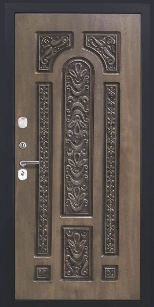 Дизайнерская входная Входная дверь ДвериПРО L-43 Д-19 (16мм, Грецкий орех + черная патина винорит) DPRO194046 класса Люкс с несколькими листами стали, звукоизоляцией и теплоизоляцией. Утепленный короб и полотно защитят от сквозняков и шумов. Модель не только надежная, комфортная, защищенная и высочайшего качества, но и очень красивая! Будет отлично сочетаться с интерьером дома, квартиры или офиса. Сейчас действует выгодное предложение по цене: 79 350 руб.