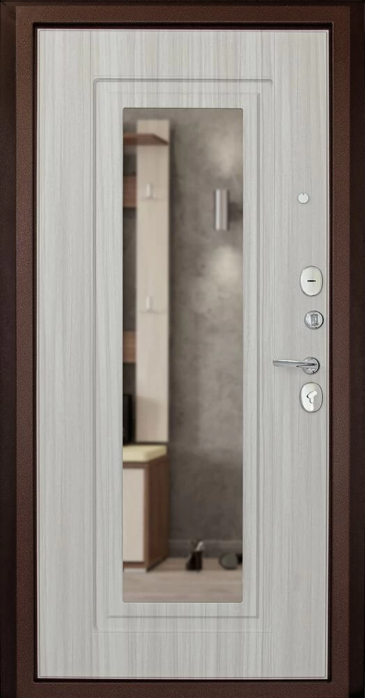 Надежная входная Дверь ДК Рубикон зеркало премиум класса по цене 32 877 руб. Большая толщина стали защитит от проникновения в ваш дом, квартиру или коттедж. Используется очень качественная фурнитура: замки, цилиндры, ручки, защелки. Покрытие и отделка двери изготовлено под внимательным контролем производителя. Дверь имеет долгий срок службы и гарантию.