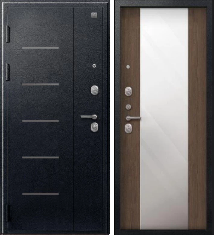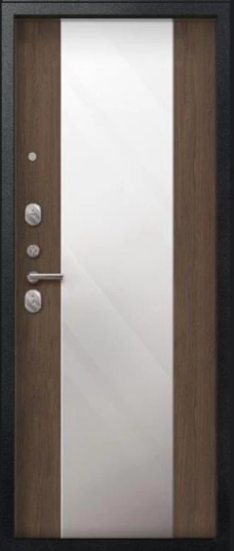 Надежная входная Дверь V-04 Черный муар - Миндаль Зеркало премиум класса по цене 43 127 руб. Большая толщина стали защитит от проникновения в ваш дом, квартиру или коттедж. Используется очень качественная фурнитура: замки, цилиндры, ручки, защелки. Покрытие и отделка двери изготовлено под внимательным контролем производителя. Дверь имеет долгий срок службы и гарантию.